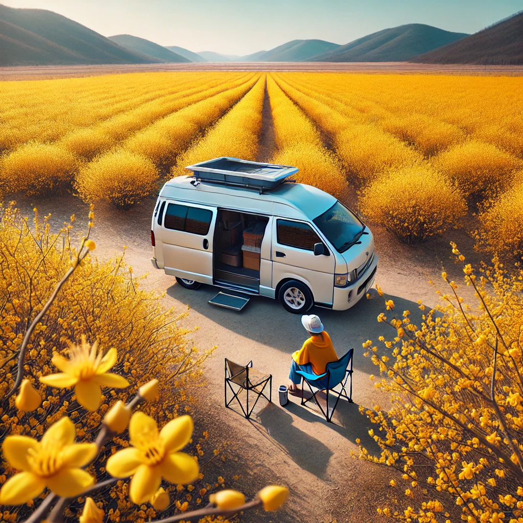 아름다운 노란 꽃과 함께 감성적인 차박 여행을 떠나보세요!